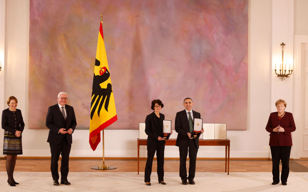 Koronavirüs salgınında geliştirdikleri aşı birçok ülkede kullanılmaya başlayan BioNTech kurucu ortağı ve CEO’su Prof. Dr. Uğur Şahin ve eşi Dr. Özlem Türeci’ye Almanya Federal Cumhuriyeti Liyakat Nişanı verildi.