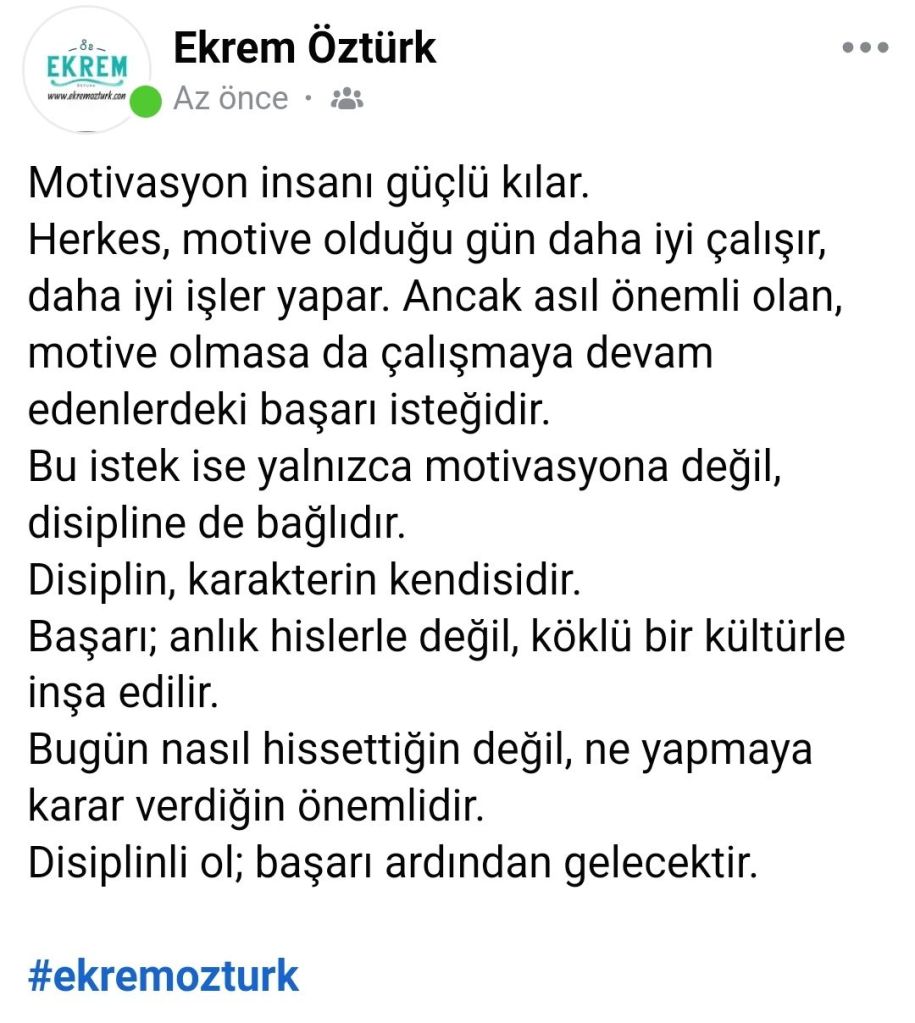 Unutmayın: Disiplinli olun, başarı sizi takip edecektir.