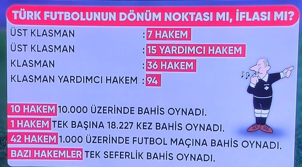 Türkiye Futbol Federasyonu’nun açıkladığı veriler, Türk futbolunda belki de tarihin en ağır güven bunalımını gözler önüne serdi. Üst klasmanda görev yapan hakemlerin on binlerce kez bahis oynadığı, bir hakemin tek başına 18.227 kez bahis işlemine girdiği, onlarcasının kendi klasman maçlarına bahis yaptığı ortaya çıktı.